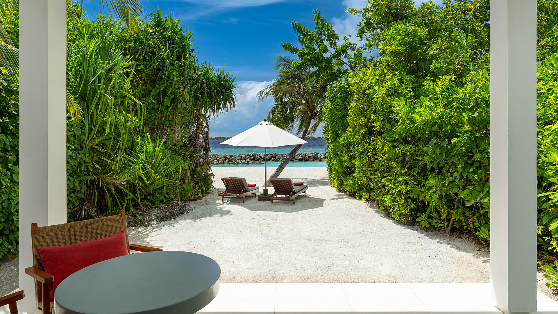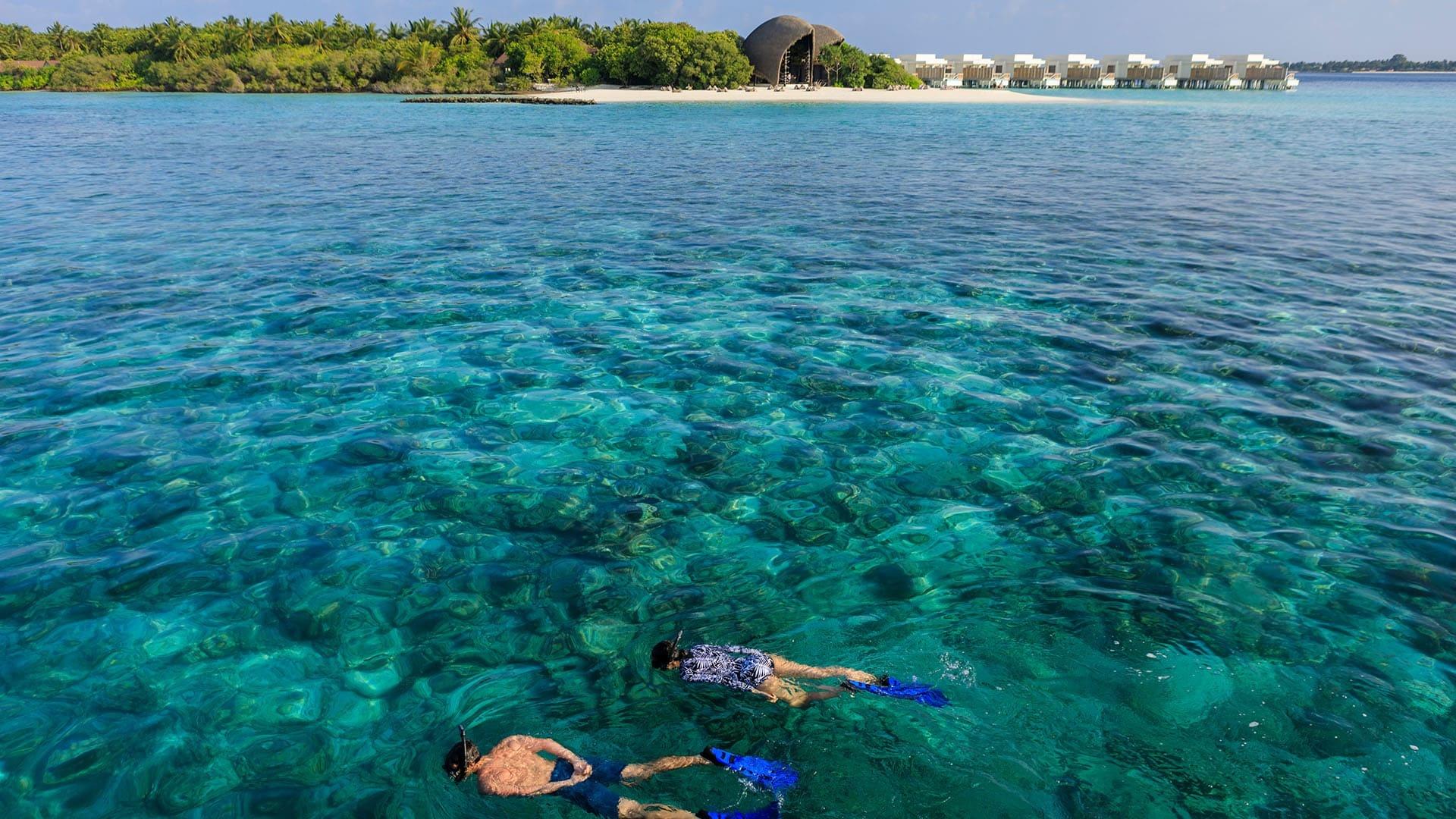 Das wunderschöne Resort, welches 2017 auf der tropischen Insel eröffnet wurde, bietet allerhand für einen entspannten und luxuriösen Malediven-Urlaub mit Premium-All-Inclusive-Service. Besonders das moderne, teils abstrakte Design beeindruckt Gäste von Anfang an. Das luxuriöse Refugium bietet aber viel mehr als nur Design – auch Service wird hier großgeschrieben. Die Insel ist von dichter, tropischer Vegetation überzogen, die einem Dschungel gleicht, und von einem puderweißen Sandstrand umgeben. Das Hausriff bietet einen wunderschönen Einblick in die bunte Unterwasserwelt der Malediven. In der resorteigenen Tauchschule werden zahlreiche Tauchkurse sowie Ausflüge angeboten. In der Nähe der Insel befinden sich einige ausgezeichnete Tauchplätze, mit etwas Glück lassen sich auch Mantarochen sichten. Beim Schnorcheln warten bunte Meeresbewohner direkt vor der Tür.