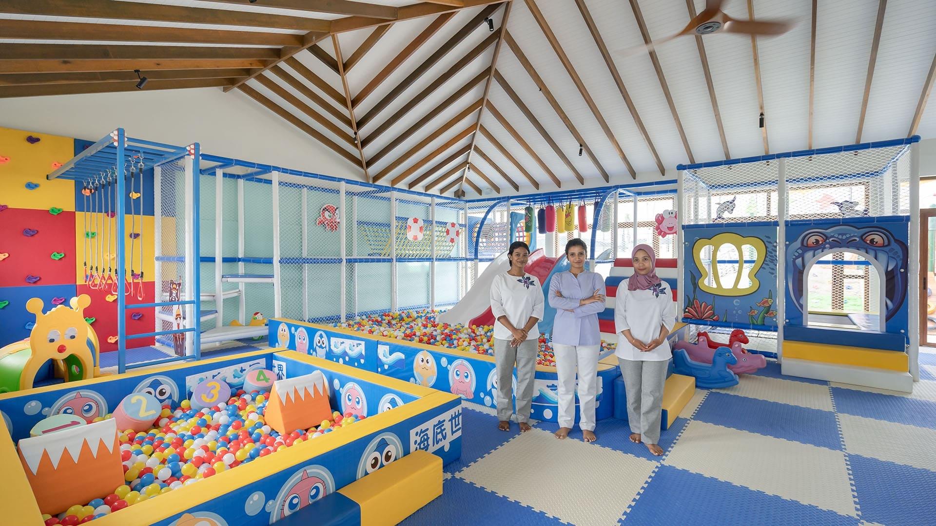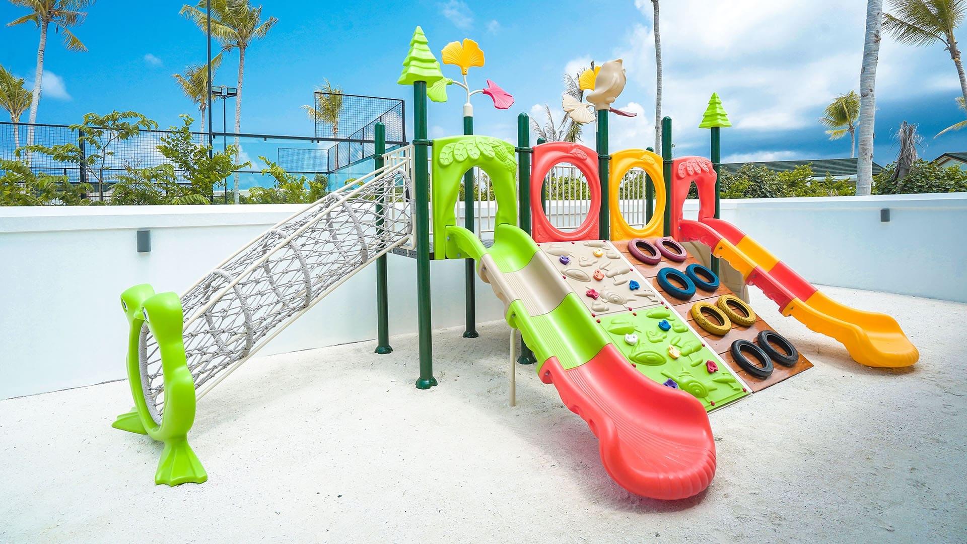 Das Hausriff liegt direkt am Inselrand und ist sowohl vom Strand als auch über den Overwater-Jetty bequem erreichbar. Für Wassersportbegeisterte bietet das Resort Aktivitäten wie Schnorcheln, Jetski, Kajak, Paddleboard sowie eine PADI-Tauchbasis. An Land sorgen Tennis- und Padelplätze für sportliche Abwechslung. Das moderne Fitnesscenter umfasst rund 150 m² und ist mit einer Auswahl an Cardio- und Kraftgeräten ausgestattet. Ergänzend werden Delfincruises, Angelausflüge sowie Turtle- und Manta-Trips angeboten. Familien finden mit dem Kids Club „Kiddie Cove“ und optionalem Babysitting zusätzliche Betreuung.