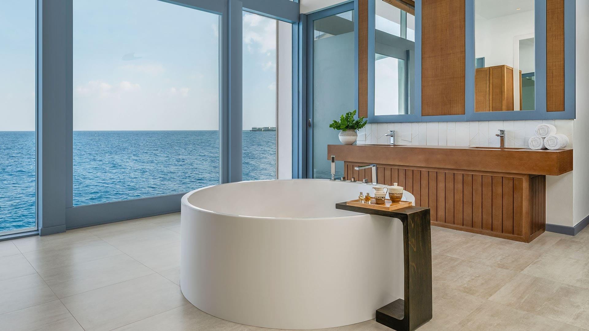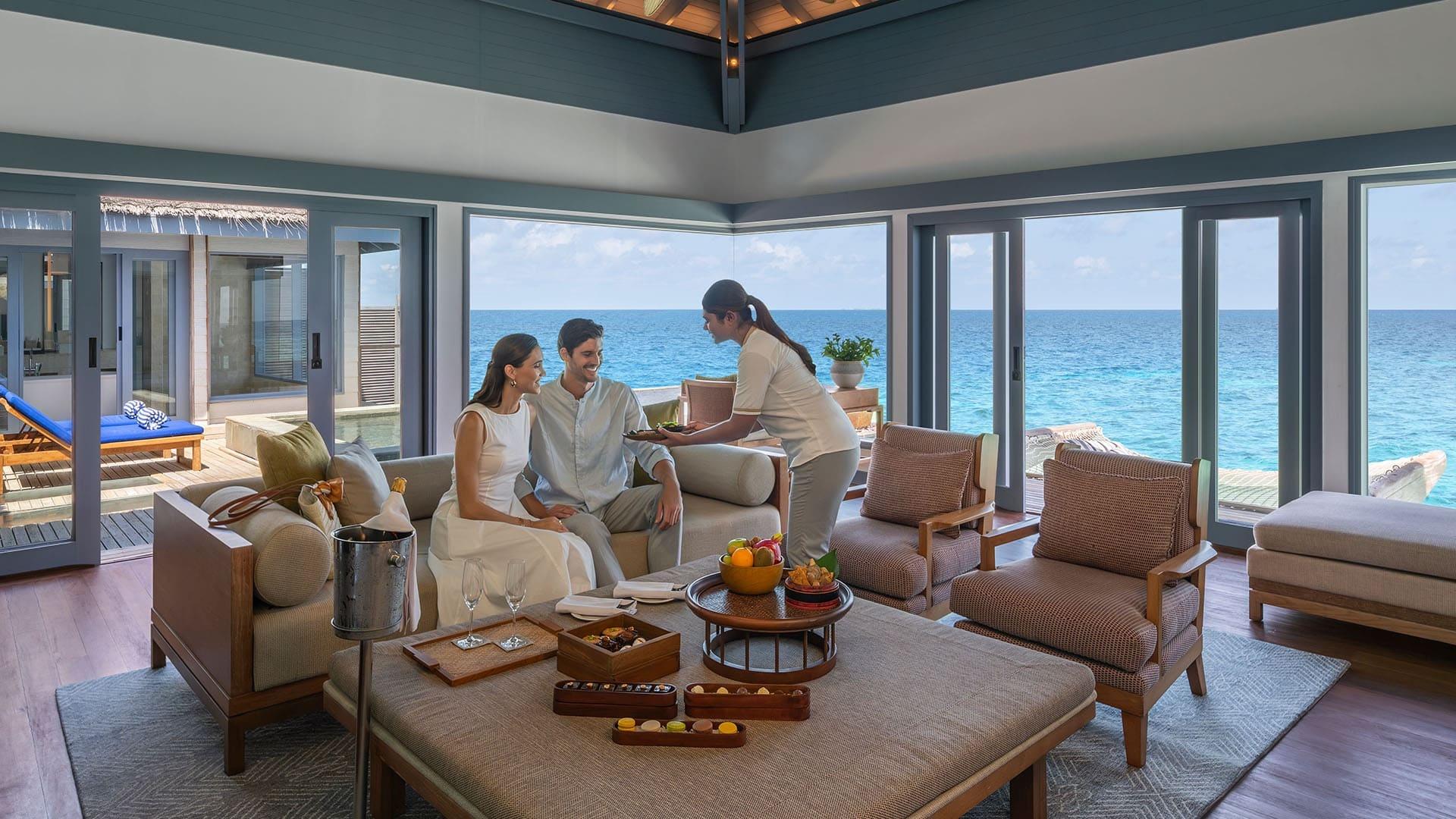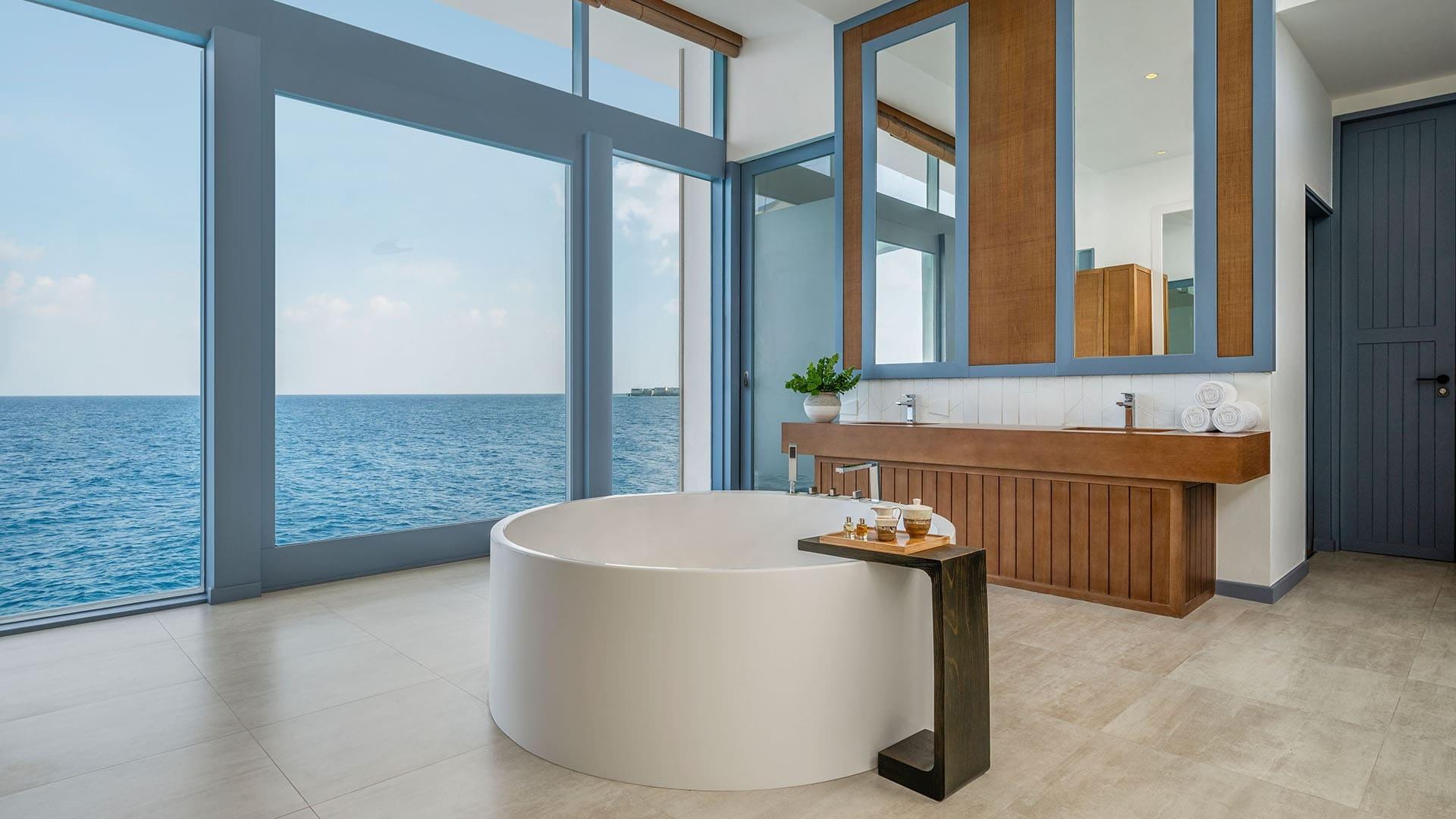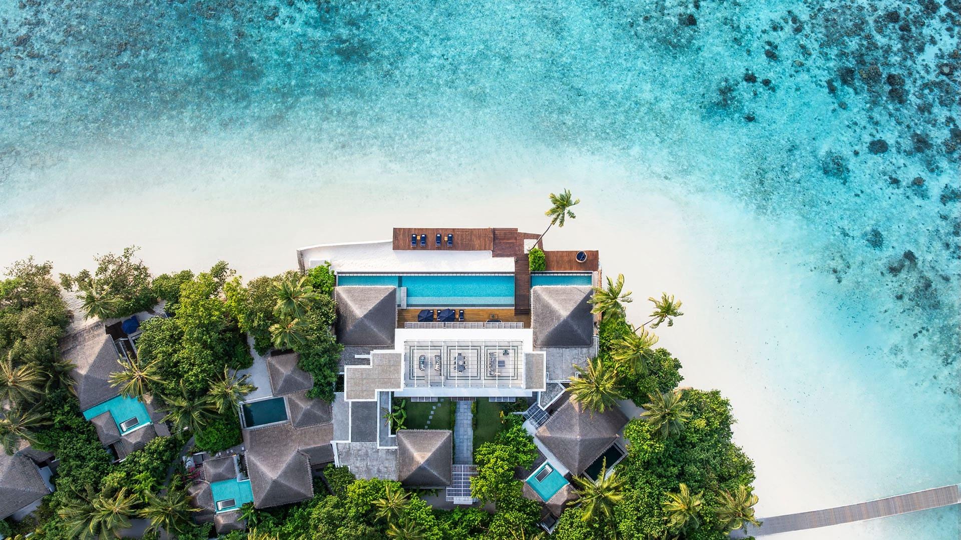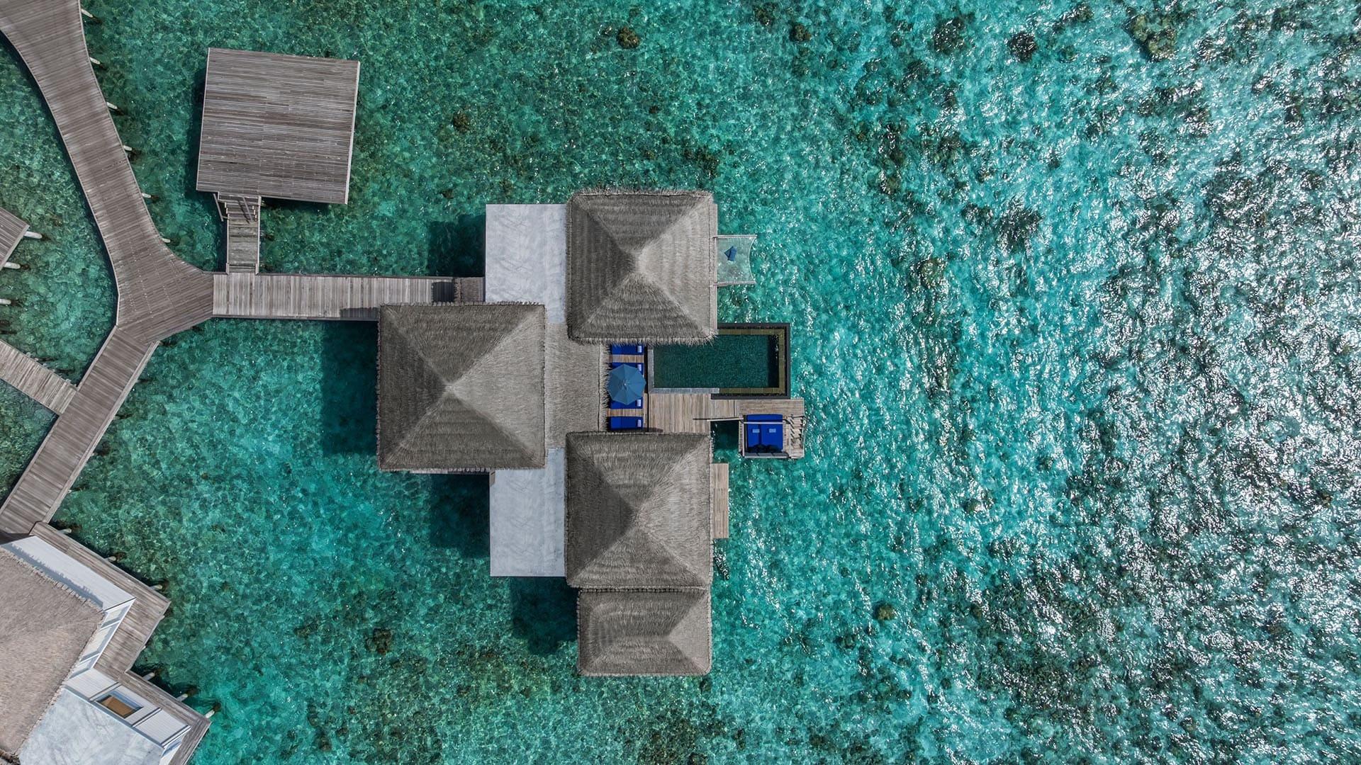 Die geräumigen Villen zeigen durch klares, striktes Design, sowie sanfte blau und weiße Farbtöne eine Architektur, welche durch die Meereslandschaften der Malediven inspiriert wurde. Jedes Haus verfügt über einen privaten Pool und Außendusche, Balkon oder Terrasse und Klimaanlage, Internetzugang, Surround-Sound-Audiosystem, Telefon und TV. Außerdem verfügen sie noch über eine Minibar und Kaffeekocher. Und last but not least. Der Butler-Service, welcher Ihnen 24 Stunden zur Verfügung steht.