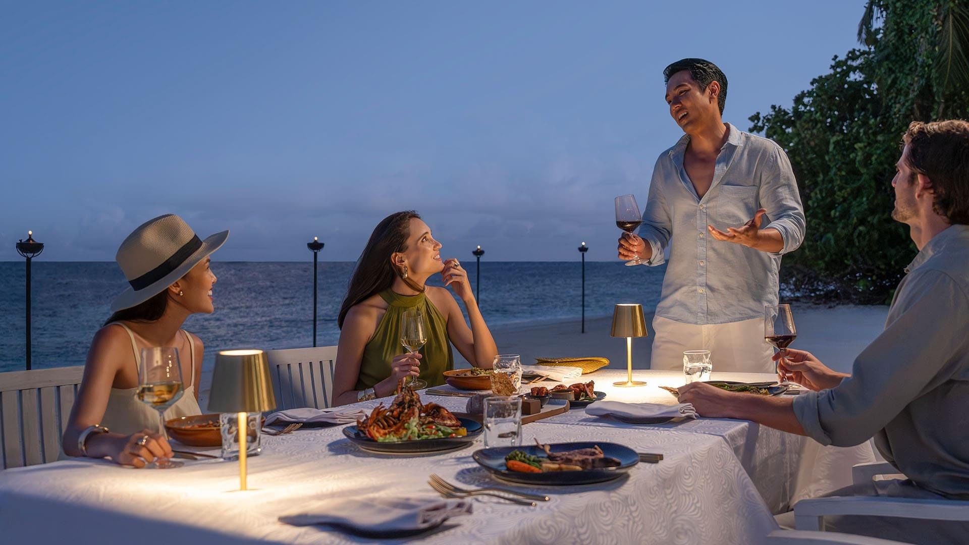 Weite, weiße Strände und üppig wuchernde Palmen säumen dieses wundervolle Resort und schaffen Platz für Ruhe und Erholung. Dieser traumhafte Platz punktet mit sagenhaften Service - dem Butler Service - welches Ihren Urlaub zu einem unvergleichlichen Erlebnis machen wird. Suchen Sie neben Ruhe auch Entspannung so sind Sie im Spa bestens aufgehoben. Es befindet sich über dem Wasser und es werden verschiedene Behandlungen angeboten. Zusätzlich können sich bei Yoga entspannen oder im perfekt eingerichteten Fitnesscenter Ihre Kondition verbessern. Sollten Sie immer noch über Kraft verfügen, steht Ihnen der Sportkomplex zur Verfügung. Danach können Sie sich entweder im Außenpool oder in der Lagune entspannen. Kulinarisch werden Sie in 3 Restaurants und in 2 Bars verwöhnt. Im Thari beginnt der Tag mit einem reichhaltigen Frühstück und mit frischen, regionalen Früchten. Zusätzlich werden Sie mit frischen Salaten und kleinen Snacks verwöhnt. Das Thari liegt direkt am Strand und Sie genießen Köstlichkeiten vor der traumhaften Kulisse des türkisen indischen Ozeans. Das Yuzu liegt wiederum über dem Wasser und es erwarten Sie Nikkei, serviert mit einer kulinarischen Fusion von Peruanischen Gerichten und der Eleganz der Japanischen Küche. Im Open Air Grillrestaurant The Firepit, dass 2 Mal wöchentlich geöffnet ist, sehen Sie den Köchen beim „Zaubern“ zu. Die Speisen werden vor Ihnen zubereitet. Phantastische Cocktails und hervorragende Weine runden das kulinarische Angebot im Firepit ab. Den Sonnenuntergang betrachten Sie aus der Yapa Sunset Bar, in der Snacks, alkoholische Getränke und feine Cocktails geboten werden. Um den Abend perfekt ausklingen zu lassen gönnen Sie sich noch ein Glas Champagner oder einen Drink in der eleganten Long Bar. Auf der tropischen Insel, im glasklaren Ozean, laden Sie 38 großzügige Villen ein, die schönsten Wochen des Jahres zu verbringen. Im Einklang mit der Natur erschaffen, finden sie Resorts am Strand oder als Pfahlbauten direkt über dem Meer.