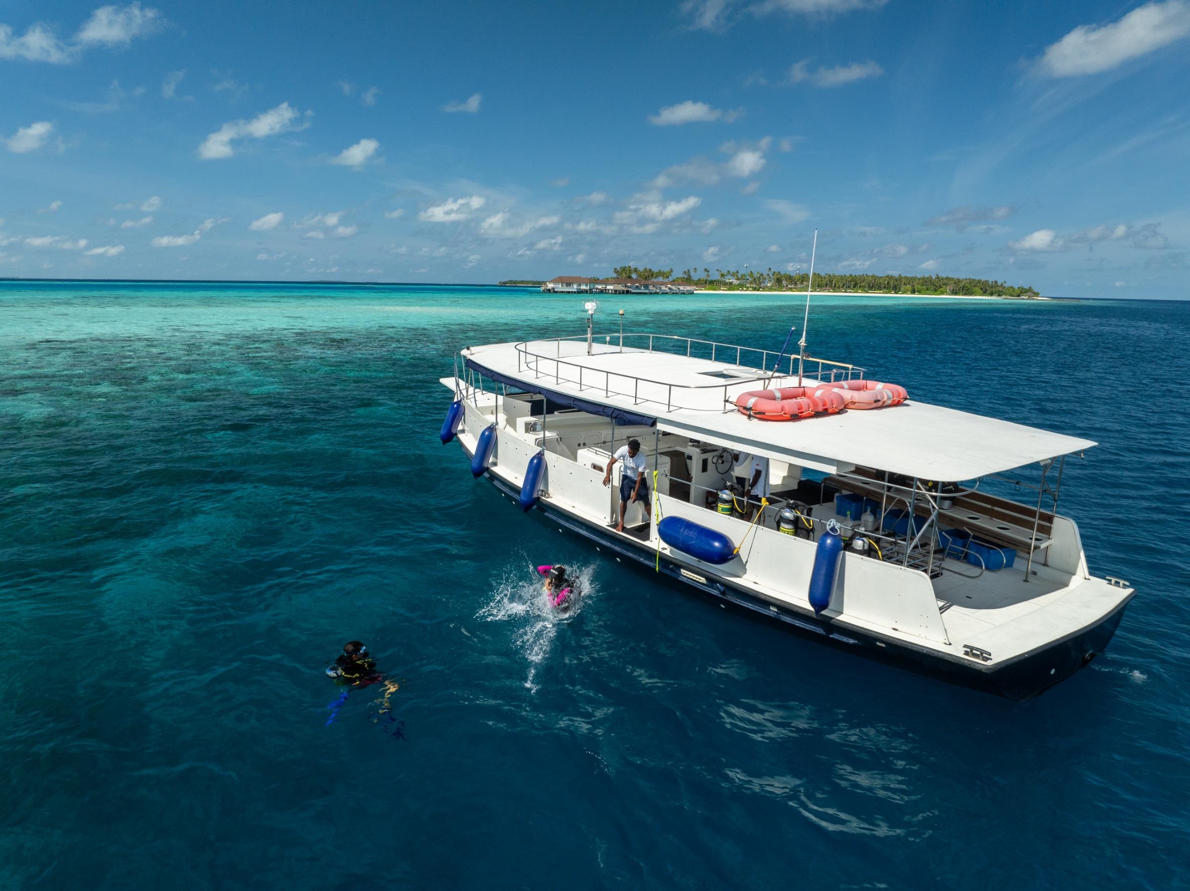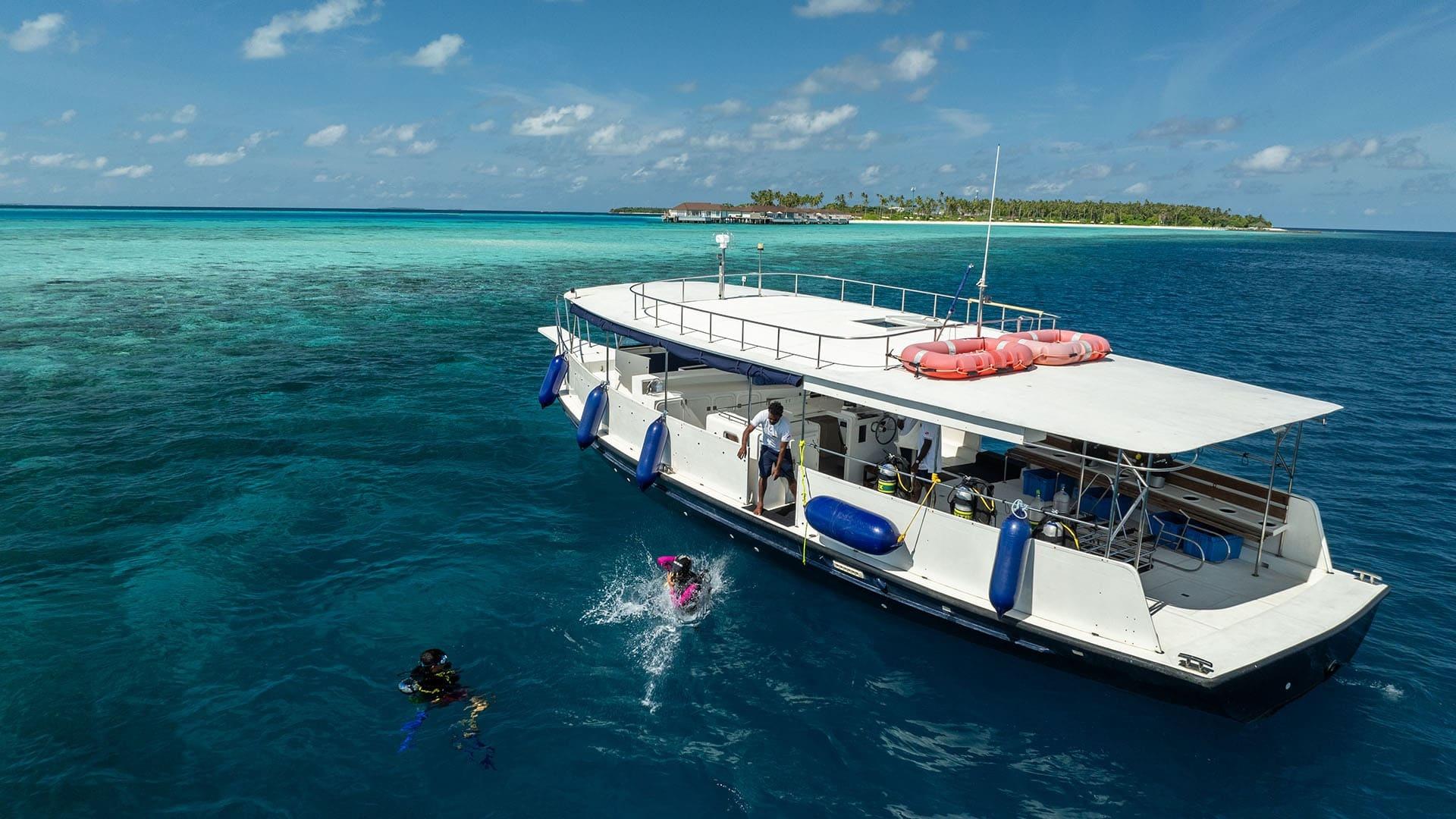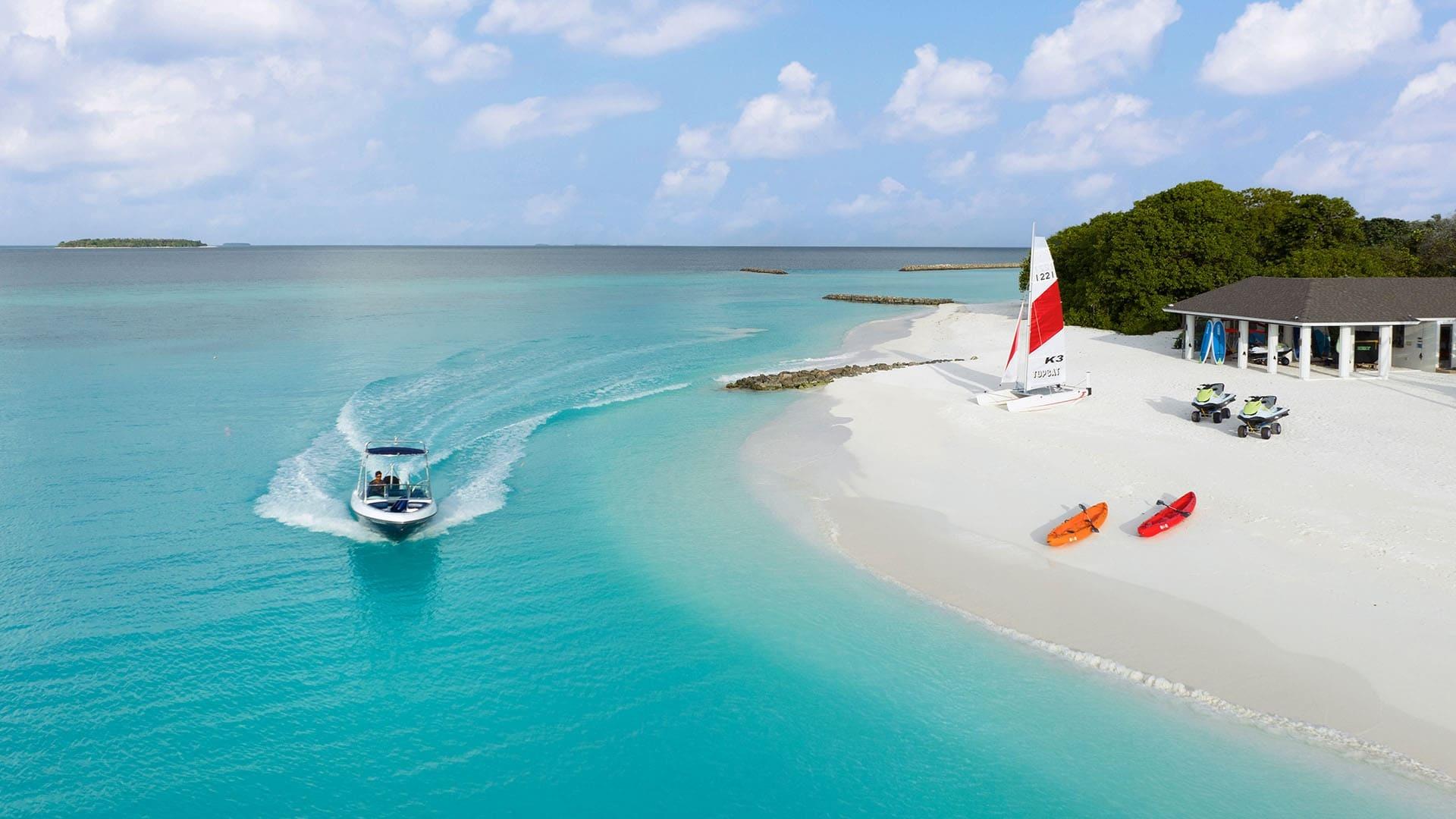 Das Resort bietet direkten Zugang zu einem farbenprächtigen Hausriff und einer ca. 2,6 km langen Lagune, in der morgens häufig Delfine gesichtet werden. Das Hausriff liegt direkt an der Insel zwischen dem Ankunftsjetty und dem Bereich „Smugglers Shack“ und ist somit bequem erreichbar. Mit dem Aquafanatics Dive & Watersports Centre stehen Tauchen, Schnorchelausflüge und zahlreiche Wassersportarten wie Catamaran, Windsurfen, Kajak und Jetski zur Auswahl. Zudem gibt es Ausflüge wie Hanifaru-Bay-Exkursionen, Delfinbeobachtung oder Game Fishing.