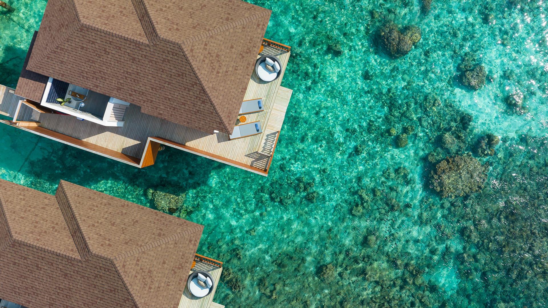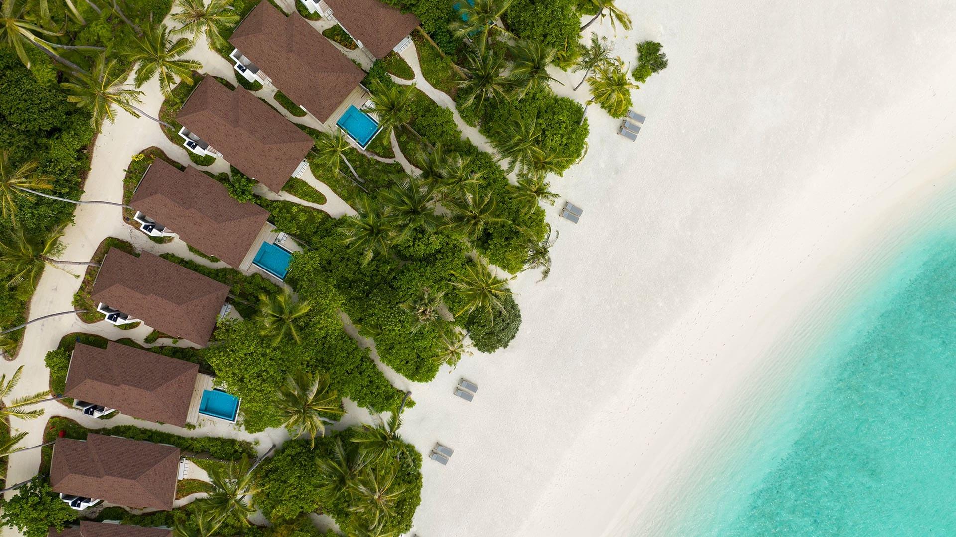 Die 176 Unterkünfte des Avani+ Fares Maldives Resorts verbinden moderne Eleganz mit entspanntem Inselkomfort. Ob am weißen Sandstrand, über der türkisfarbenen Lagune oder in großzügigen Pavilions mit mehreren Schlafzimmern – alle Villen bieten ein hohes Maß an Privatsphäre und ein stilvolles Ambiente in warmen Naturtönen.