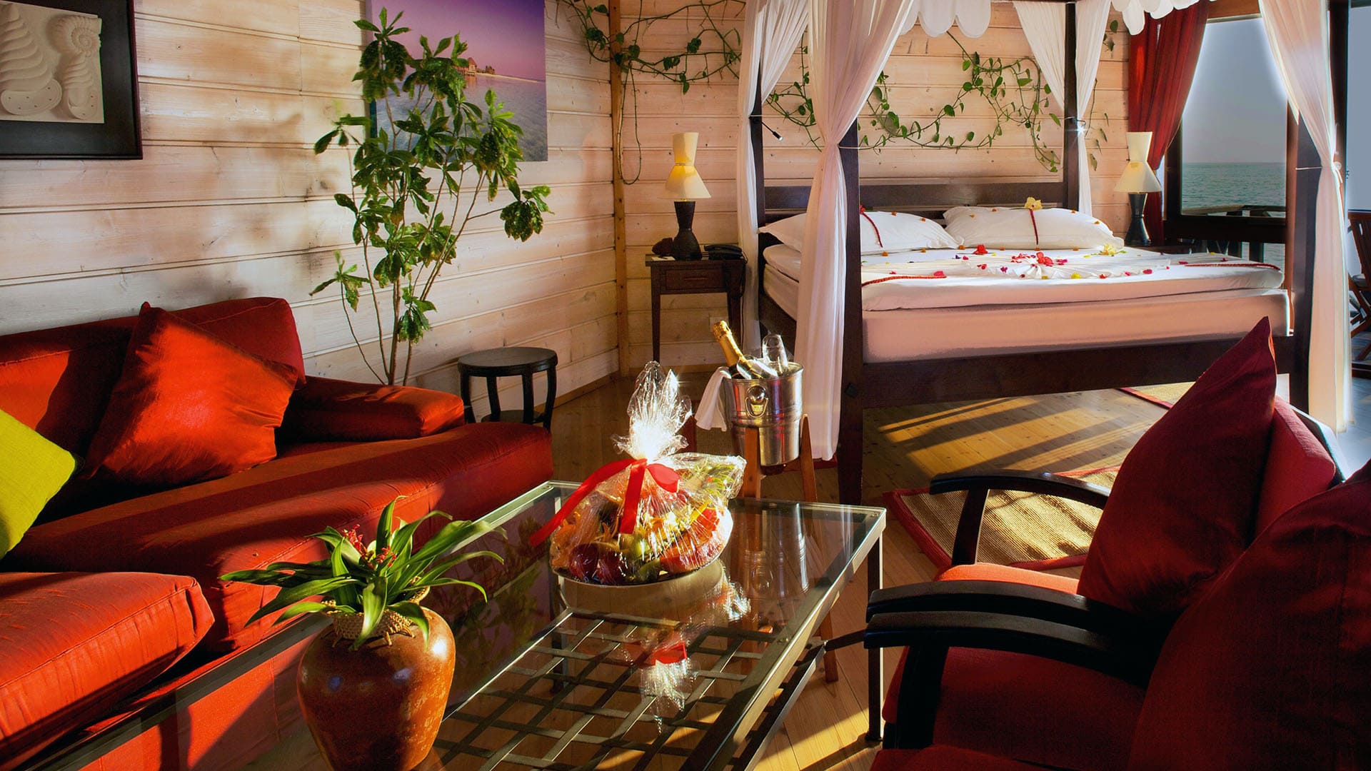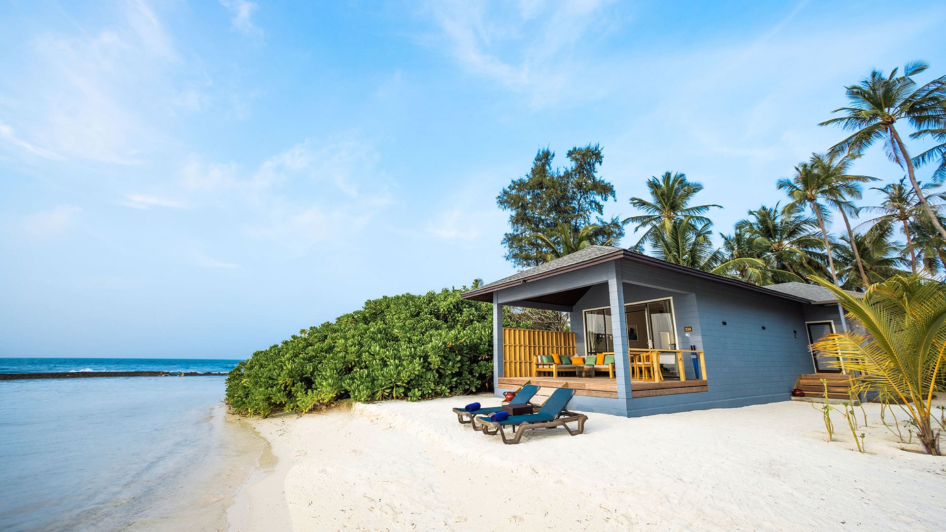 Alle Unterkünfte sind im tropischen Stil eingerichtet, mit King-Size-Betten, Klimaanlage, Deckenventilator, Minibar, Nespresso-Maschine, Safe, Bluetooth-Soundbar/Wecker, TV, halb offenen Bädern mit Regendusche sowie möblierten Terrassen. Viele Kategorien verfügen über einen Jacuzzi oder privaten Pool, die Sangu Water Villas und die Honeymoon Suite bieten ein Adults-only Ambiente mit direktem Meerzugang und Sonnenuntergangsblick.